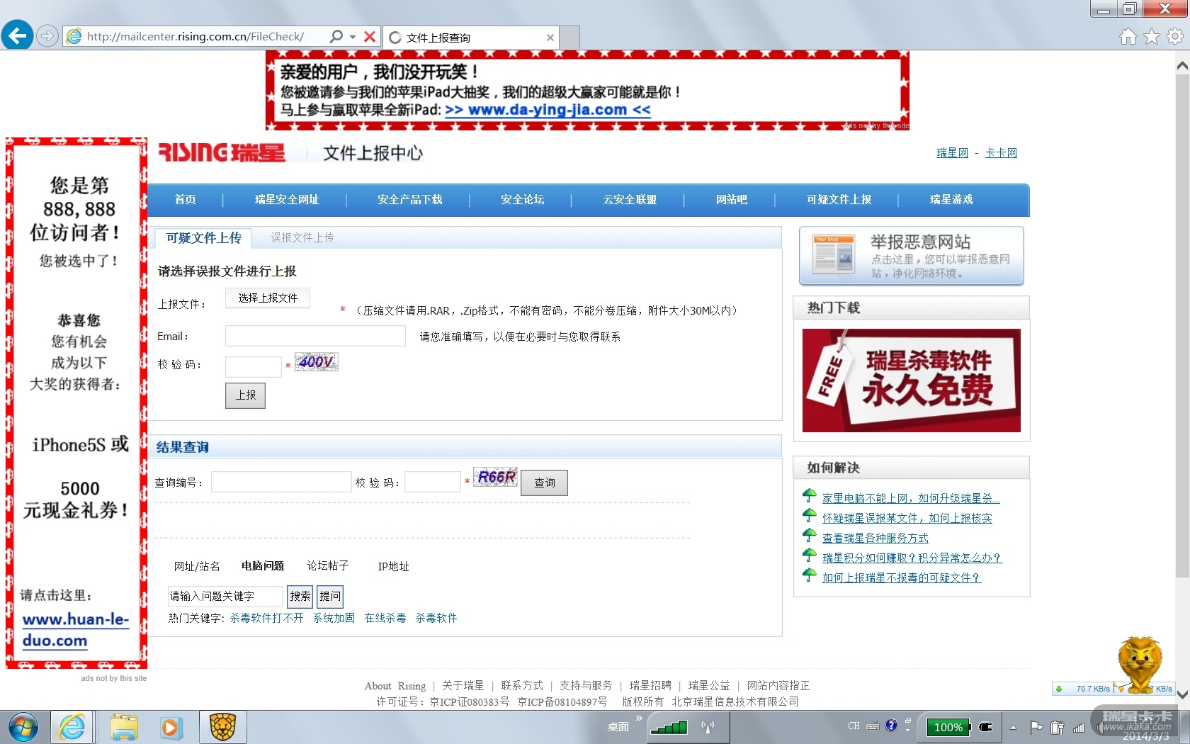 还有就是瑞星上报恶意软件的界面上总是出现,病毒日志不能上传。