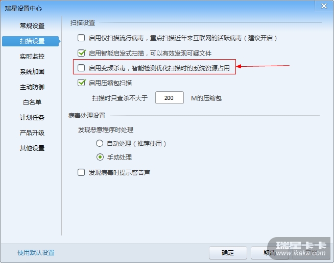 是否开启变频杀毒和云查杀了?取消变频杀毒的勾选再扫描试试。