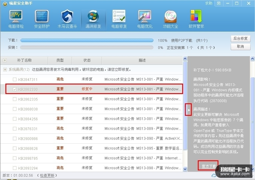 瑞星安全助手发现4个漏洞,修复时下载失败,几次下载都失败修复不了(截有图不知怎样发到帖上)。