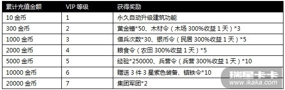 活动内容:活动时间内,玩家累计充值达到相应金额要求,即可领取奖励,同时还可获得相应的VIP等级。