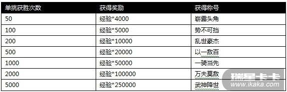 活动内容:单挑次数达到一定数量即可获得海量经验,还可获得万人景仰的称号