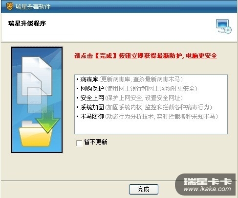 瑞星在出现这个快捷方式前,会有提示内容,请注意勾选暂不更新,再点完成,桌面就不会有这个图标了。