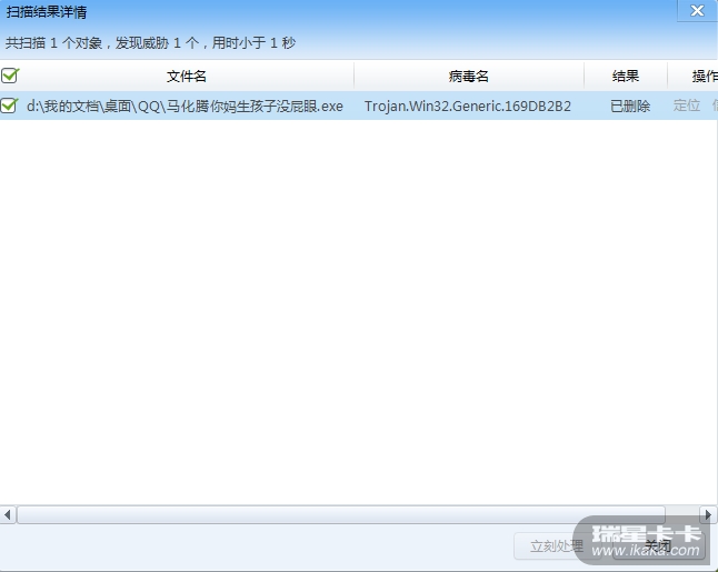 1、测试病毒样本时 瑞星的监控能检测到病毒 但经过五十余次的删除操作(详见附件log.rar中的日志log.db)才将这一病毒文件删除