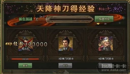 活动内容:活动期间,70级(含)以上的玩家通过升级神刀,斩杀每一次神刀升级后出现的NPC将领,即可获得经验、战斗经验加成buff等奖励。