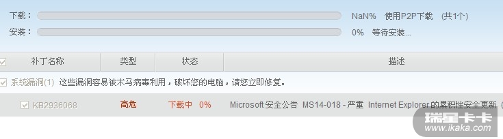 我在五一节期间也遇到此问题,后来瑞星的工程师让我先更新相应的操作系统,我照着做了。在更新操作系统时,该漏洞作为更新内容之一,也被下载并且安装成功。我再用瑞星扫描漏洞,就没有漏洞了。