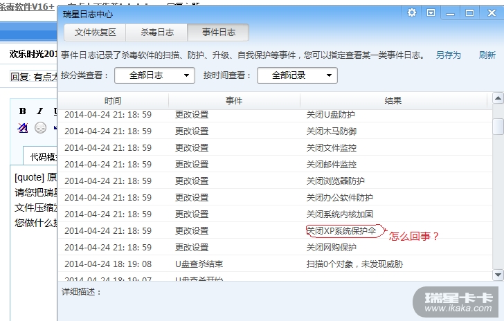 瑞星日志中心为什么有xp防护伞工作关闭和打开???求解释