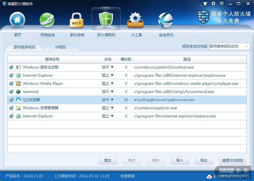 请楼主不保留用户配置文件修复防火墙试试,修复方法:开始菜单>>所有程序>>瑞星个人防火墙>>修复瑞星个人防火墙,下一步,保留用户配置文件的勾选去掉