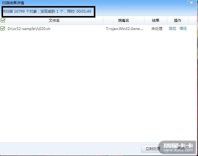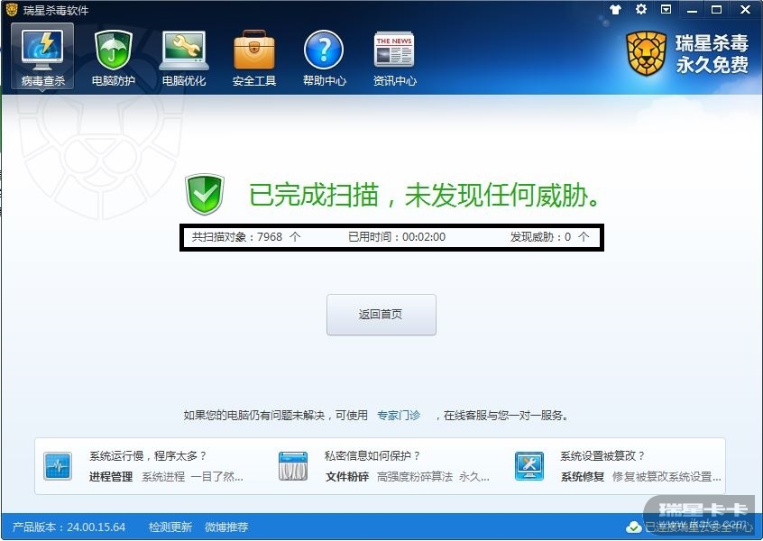 发现瑞星扫描的太慢 ,足足用了两分钟