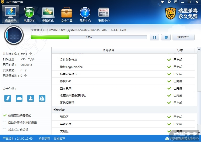在一个问题是:我全盘扫描 ,老版瑞星只用4分钟就能完成