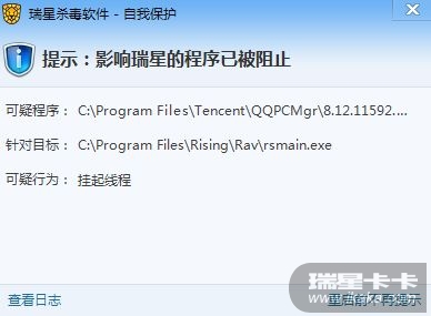 结果:瑞星自保提示管家拦截