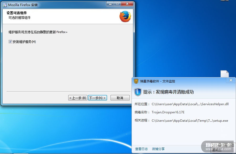 安装Firefox28,serviceshelper.dll 瑞星没有在报毒~~
