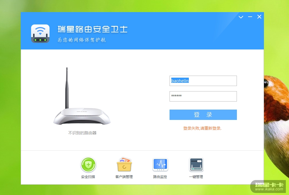 1、安装瑞星路由安全卫士后,登录。OK!