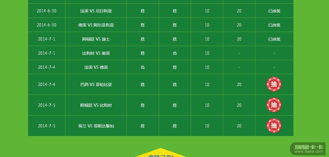 前面公布了竞猜结果,我竞猜的法国和德国,我竞猜赢了,怎么没有奖励