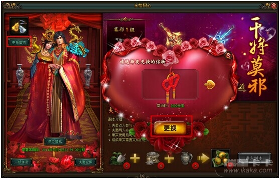 结婚成功后,依然可以更换结婚信物,进入永结同心面板,点击左上角“更换信物”即可更换