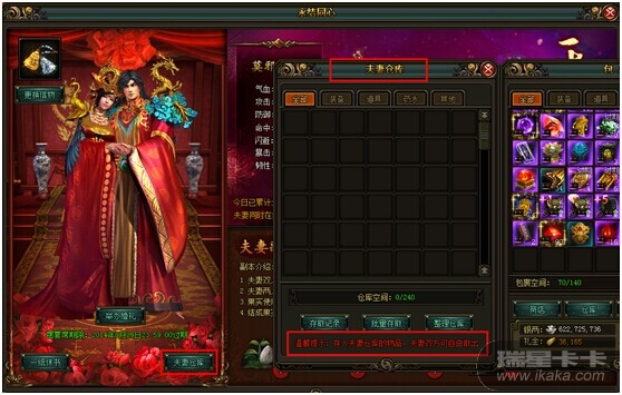 结婚后可以使用“夫妻仓库”功能,打开永结同心面板,点击“夫妻仓库”即可进入