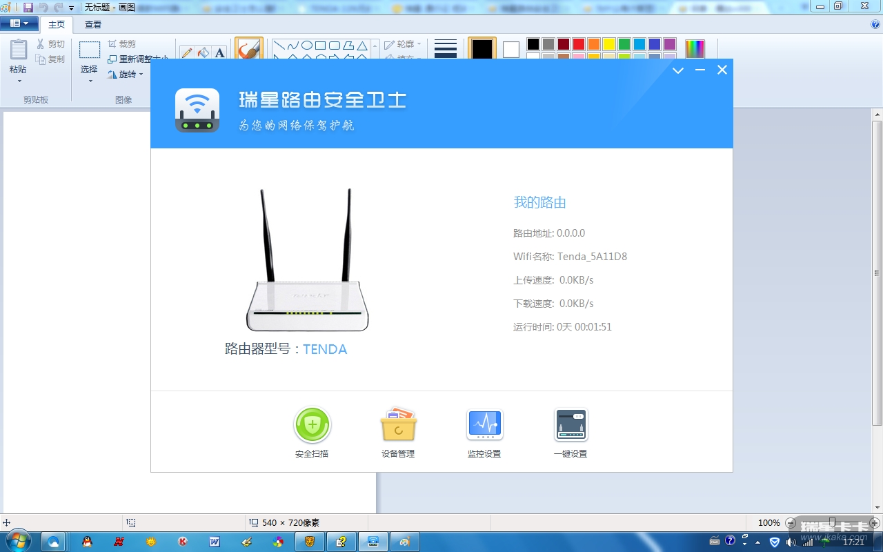 我的腾达W308R,也是不识别,安全扫描就崩溃,如图