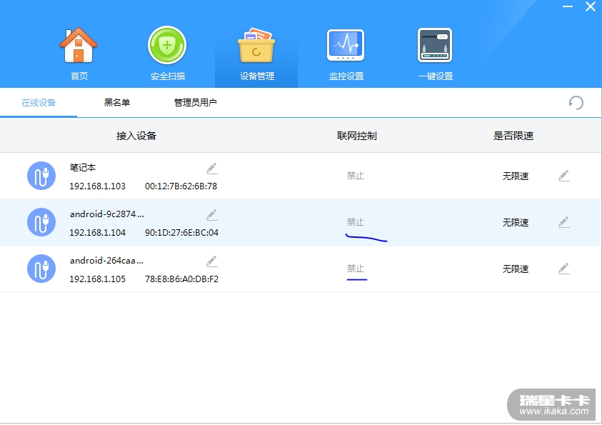 禁止联网的客户端,会被加到黑名单中。