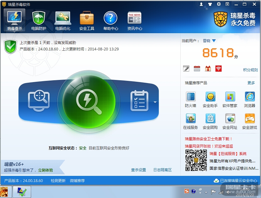 例行快速查杀时,看到瑞星杀毒界面。(如图所示)