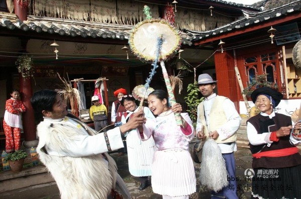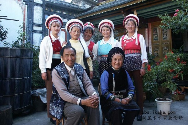 白族家庭全家福,段绍升夫妇与5个儿媳(五朵金花)。