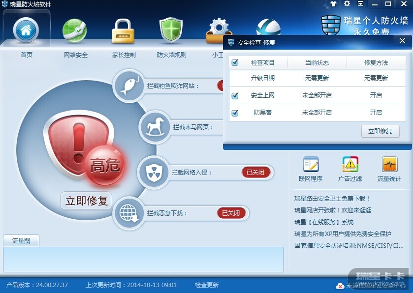 所有防护均无法启动,界面立即修复无效,无反应。2、修复防火墙后,继续