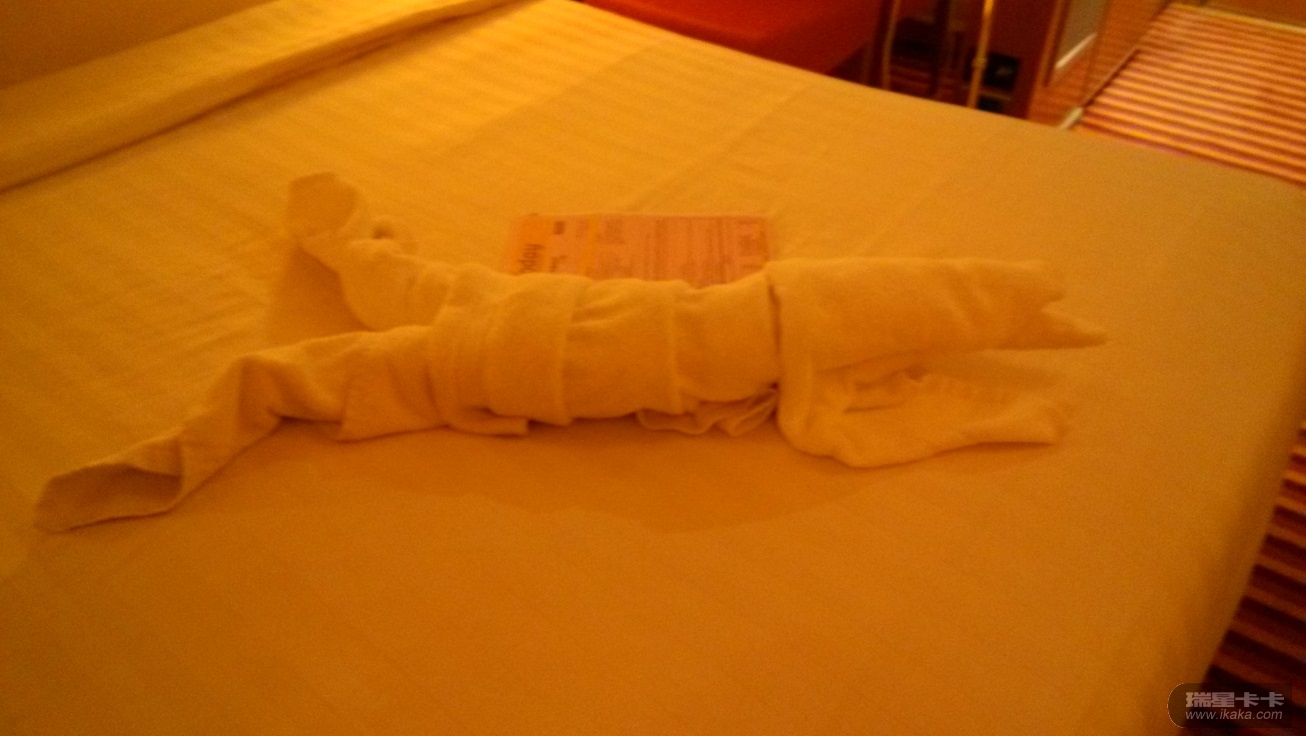 客房服务生会用毛巾秀自己的美工手艺:每天用毛巾折叠不同的动物,放在游客房间的床上。