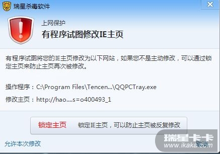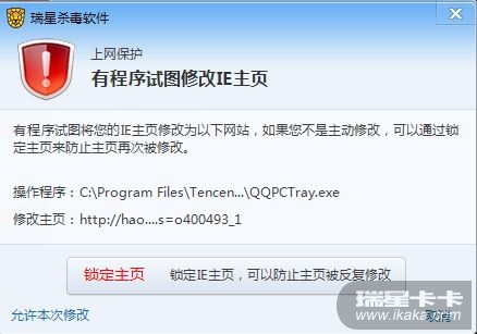 操作:无,瑞星总是拦截提示QQ管家试图修改ie主页