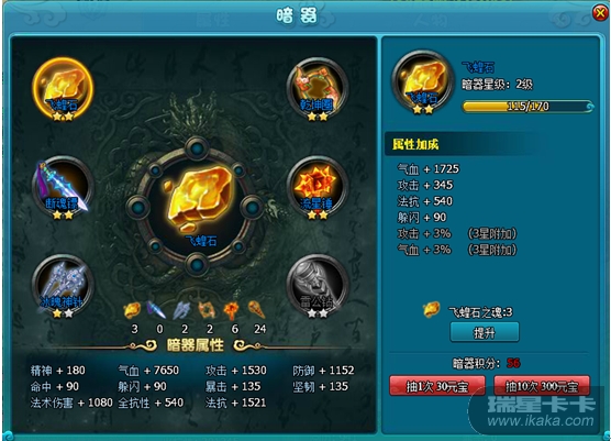 个星级,星级是需要开宝箱去提升暗器的星级;C.暗器的星级越高,可提升的上限就越高,属性就越高;D.