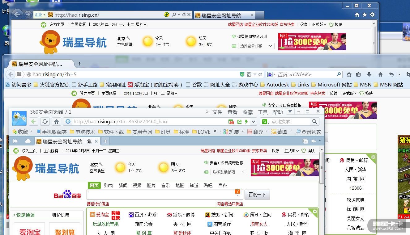 IE,火狐,360浏览器,只要打开都会打开瑞星主页,无论你浏览器设置主页为什么,第一显示主页都是这样!