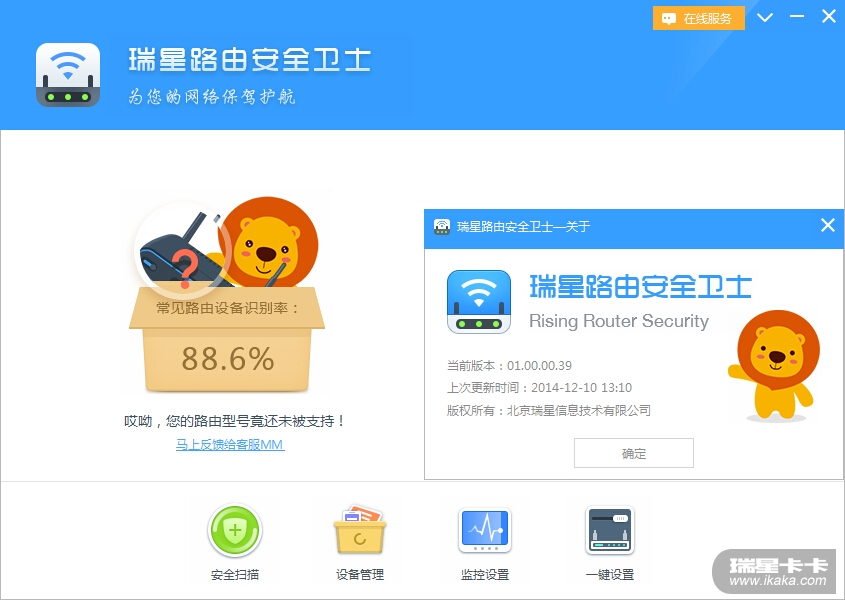 无意中发现“高危”的存在,打开一看,原来是让安装瑞星路由安全卫士,可安装完以后。无语中。。。。。:kaka8: (如图所示)