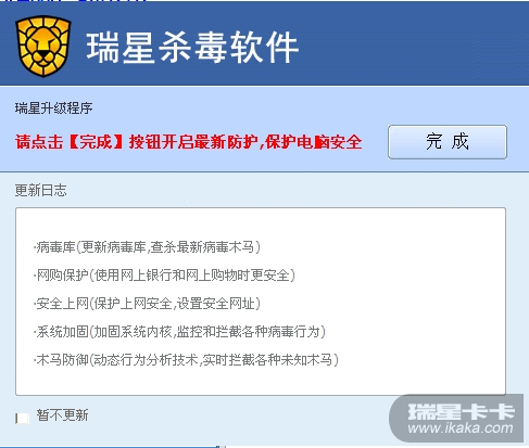 瑞星在设置主页前会有提示,请注意勾选暂不更新,再点完成,主页就不会被修改了。如下图。