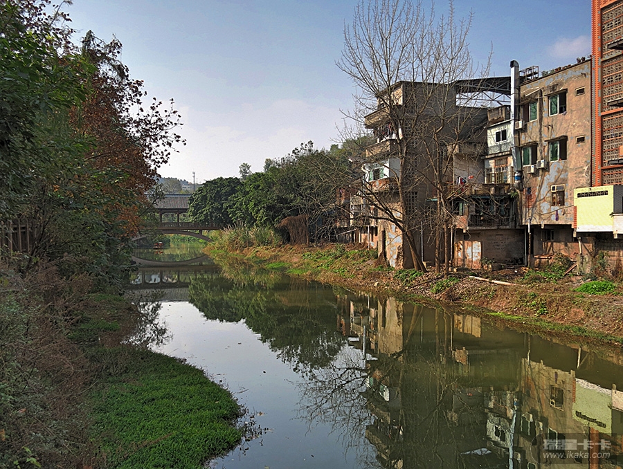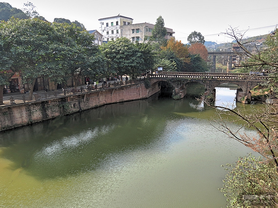 四川的第一条铁路成渝铁路就从五凤溪古镇通过,这是铁路桥,上面就是成渝铁路。