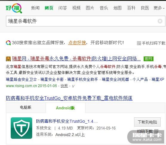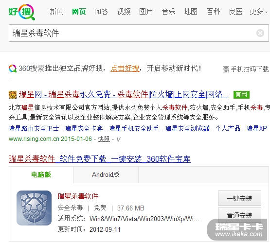 在好搜搜索上打“瑞星杀毒软件”这几个字的时候,发现在