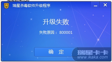 请暂时关闭V16+自我保护,重新替换Rav安装目录下NewUpdater.dll文件,Rav默认安装路径是:C:\Program Files\Rising\RAV。然后升级试试,如果还是提示800001这个错误,请找到以下文件压缩发来: