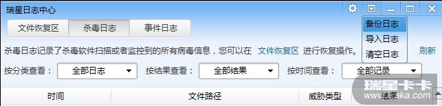 请把瑞星日志db文件导出压缩发来,日志导出方法:鼠标右键托盘处小绿伞图标>>查看日志>>右上角倒三角功能菜单处选择备份日志,把生成的db文件压缩发来。