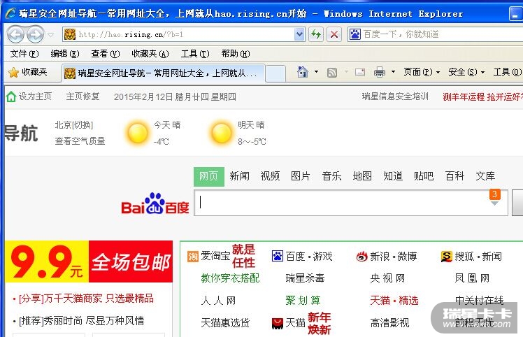 为什么现在一开机就自动打开Internet Explorer浏览器 主页是瑞星安全导航:kaka6: