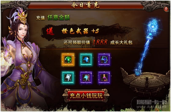 活动期间只要玩家的角色是第一次进行充值,充值任意金额可获得“首充大礼包”,隔日再次进行任意金额的充值还可领取更多成长大礼。