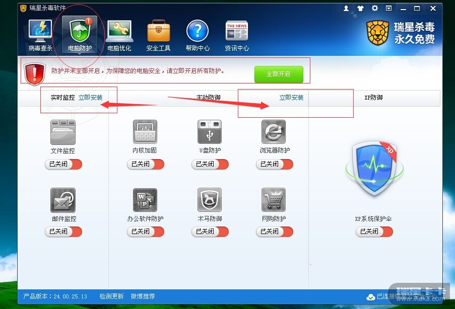 关键昨天之前还正常,是更新瑞星之后复现的这个防护关闭的问题呀???
