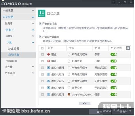 智能模式 ,只开启 沙盘(自动禁止加载驱动) + 行为分析引擎 ,并关闭 系统加固