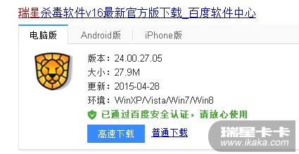 这是百度 下载的 ,百度软件中心的 ,注意查看瑞星版本