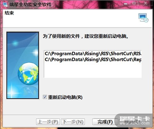 用的是瑞星全功能安全软件  每天我都更新  每次升级后提示重启电脑