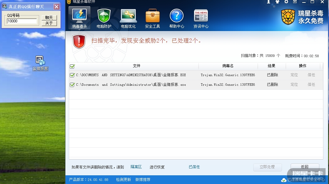 2、为何瑞星提示删除成功???