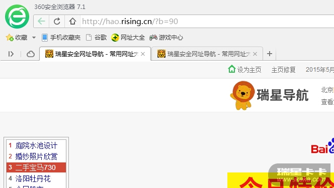 您使用的是什么浏览器?被锁定的瑞星导航具体是什么网址?