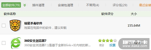 (很有意思,以前花钱买了瑞星杀毒软件。1年还是2年后升级还需要钱,所以就不用了,结果现在却主动给我安装了。),瑞星浏览器和杀毒软件在程序菜单中找不到链接,就用了360的软件卸载,,结果这2个都卸载不掉。