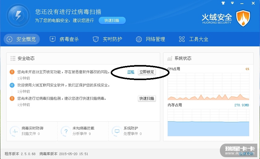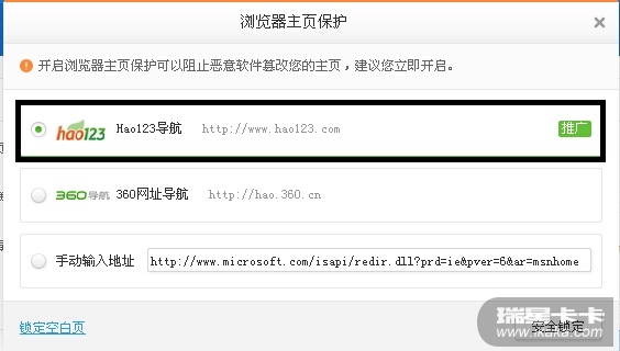 瑞星修改主页之前一般都是有弹窗提示的,勾选暂不更新就不会被锁定了。