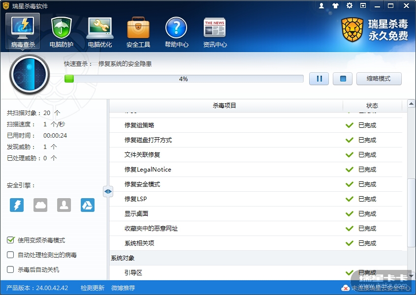 瑞星能正常升级,但是瑞星无法 连接云中心,并且 全盘时,瑞星的两个引擎也不正常