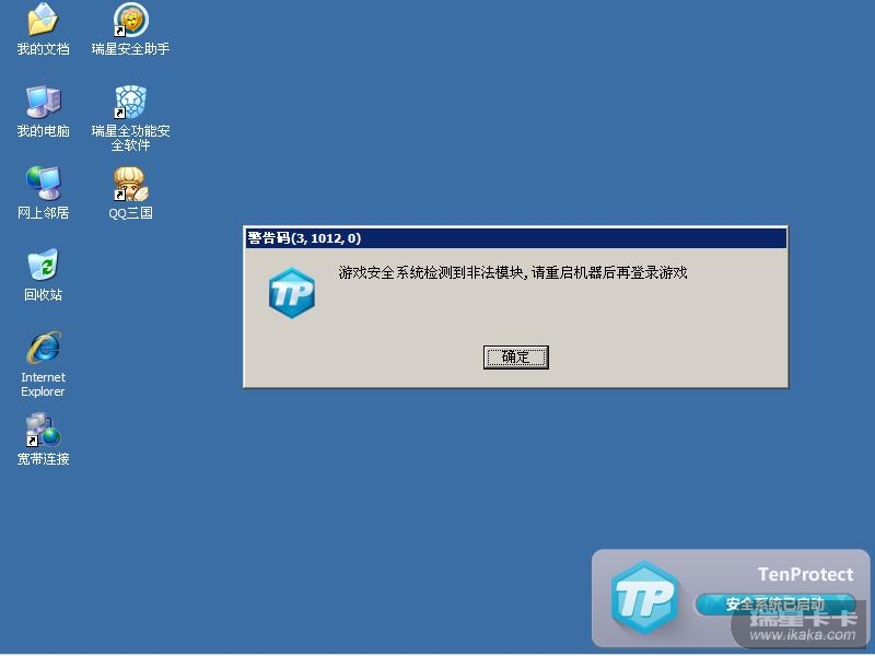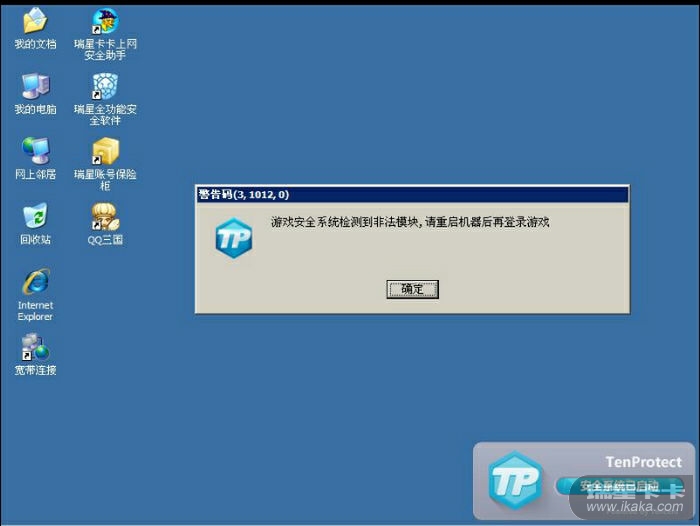 接着卸载了 瑞星卡卡上网安全助手,只剩下瑞星全功能安全软件,启动游戏,TP不再提示非法模块。