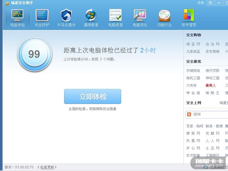 卡卡上网安全助手的版本是多少?请您提供下QQ三国游戏的下载地址和版本。