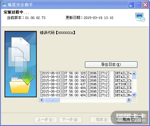 远程查看安装瑞星杀毒软件V16+,提示错误代码8000002A。