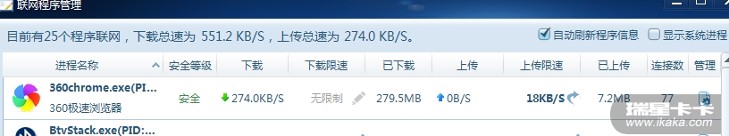 瑞星联网程序管理限制不了浏览器下载速度,可以限制上传,用过360的流量防火墙是可以限制的。不单单只是浏览器 还有些进程也限制不了