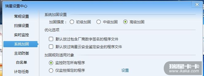 2、系统加固设置为 最高,并且取消自动放行,并开启监控